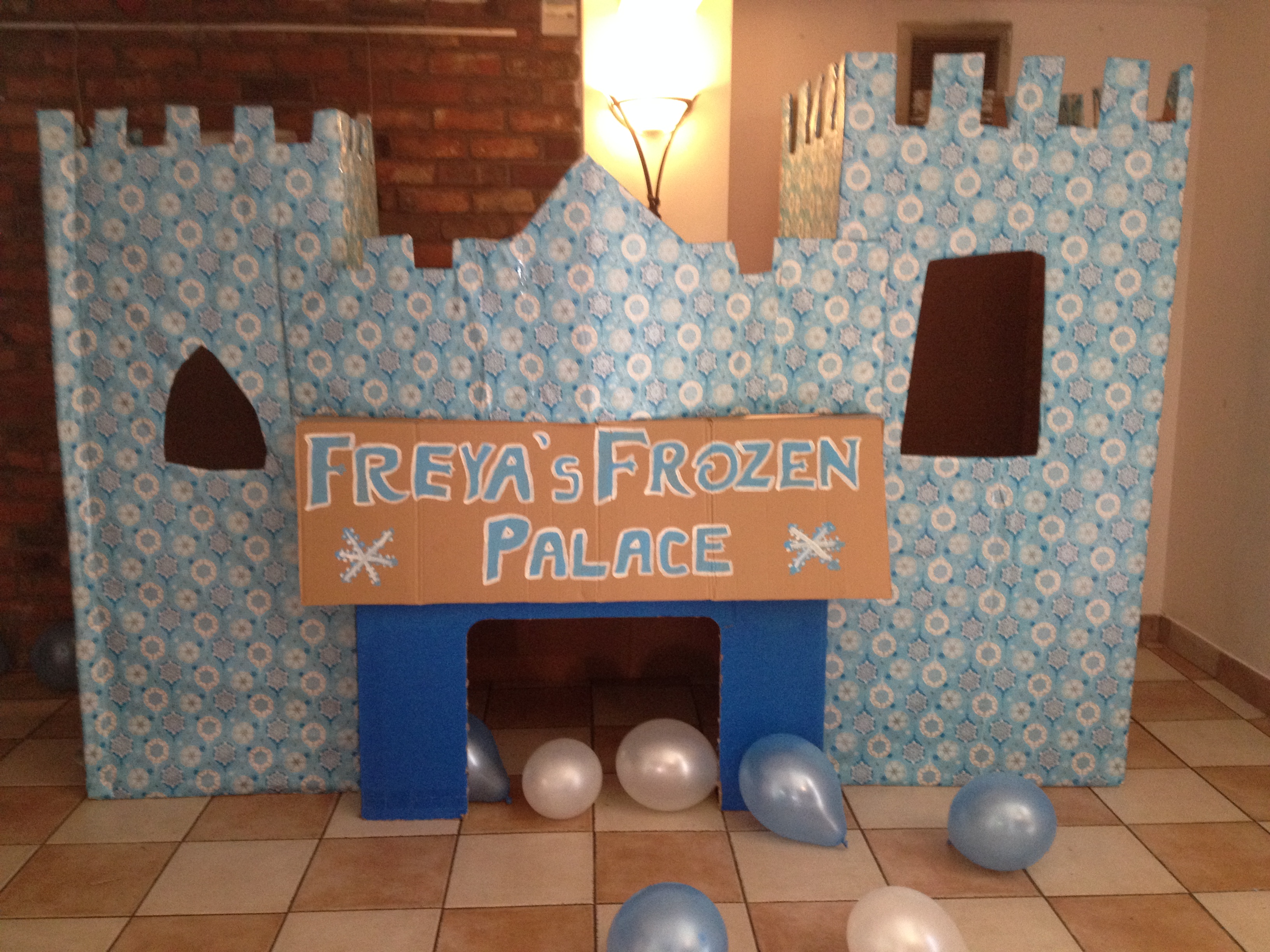 I also decided to build a giant castle which took so much longer than I ever imagined. With my husbands help we cut holes inside the giant fridge boxes which were kindly donated from curry’s so that all the children could climb through it. I then used blued wrapping paper to decorate the boxes and I was so pleased with it.